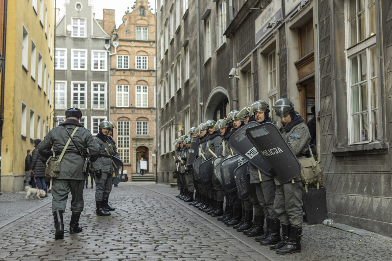 Gdańsk. Stan Wojenny - inscenizacja historyczna na Długim Targu.