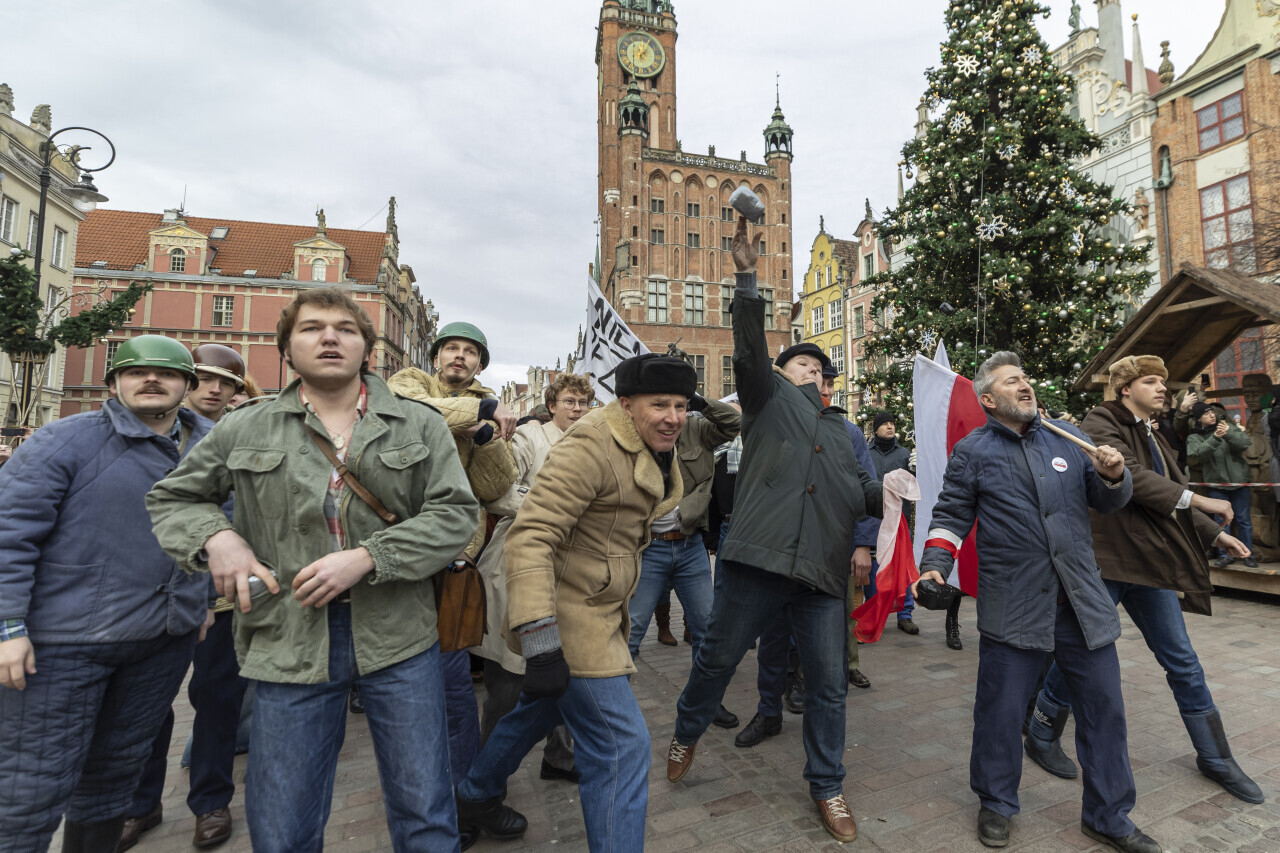 Gdańsk. Stan Wojenny - inscenizacja historyczna na Długim Targu.