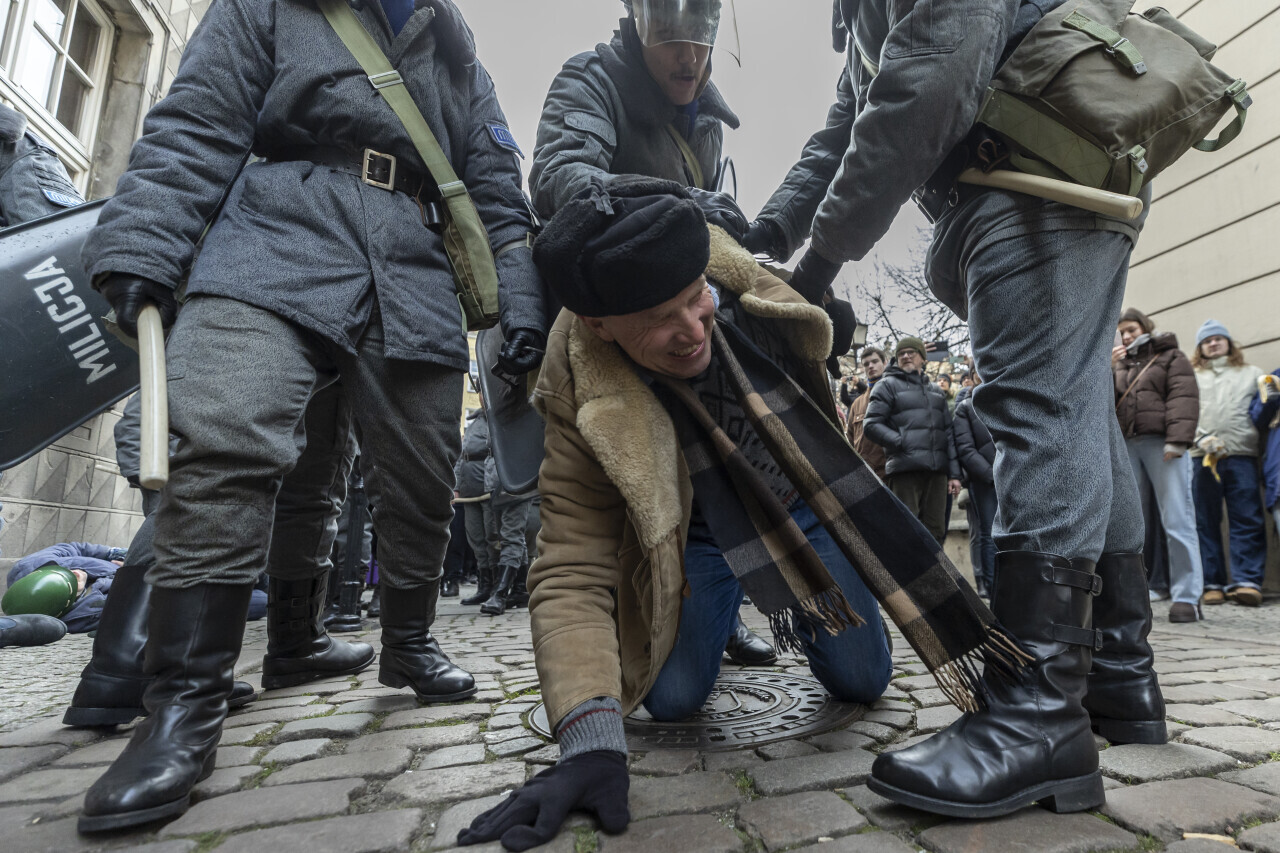 Gdańsk. Stan Wojenny - inscenizacja historyczna na Długim Targu.