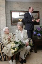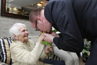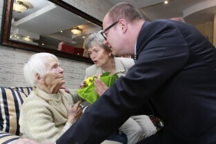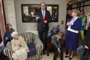 Gdańsk, Hotel Królewski. Stulecie urodzin Pani Ireny Oleszewicz - mieszkanki naszego miasta od 1957 r. W uroczystości wziął udział prezydent Gdańska Paweł Adamowicz.