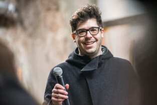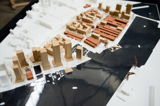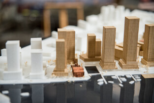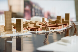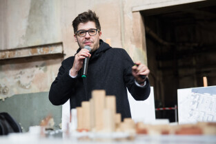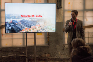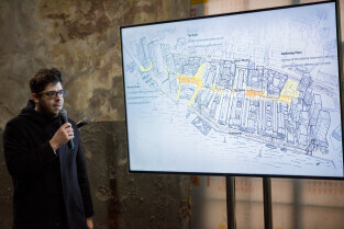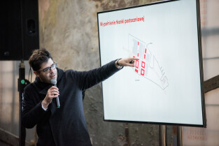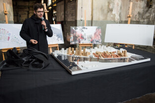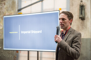 Gdańsk. Stocznia Cesarska - przyszłość. Prezentacja na temat przyszłości terenów postoczniowych. Nz. Mateusz Mastalski - architekt