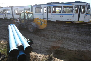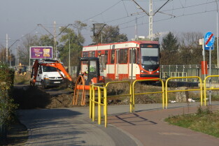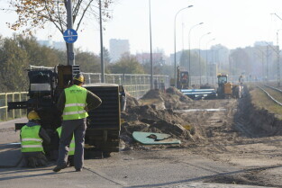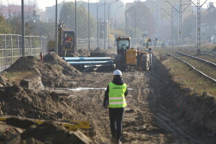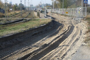 Gdańsk, Stogi. Remont torów tramwajowych.