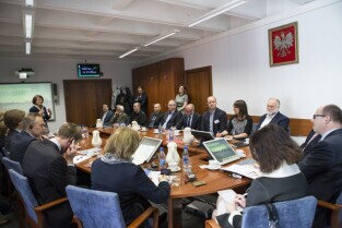 Urząd Miejski w Gdańsku. Przekazanie opracowanej "Strategii Rozwoju Terenów Nadwodnych w Gdańsku” Prezydentowi Gdańska Pawłowi Adamowiczowi przez członków warsztatów projektowych z Holandii