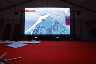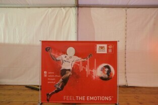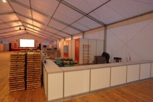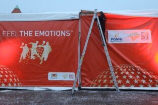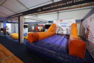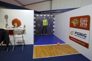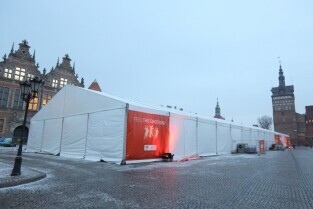 Targ Węglowy, trwają ostatnie prace przed otwarciem Strefy Kibica na Mistrzostwa Europy w piłce ręcznej mężczyzn.