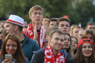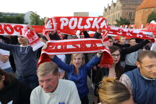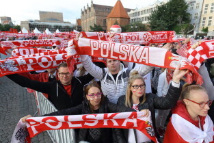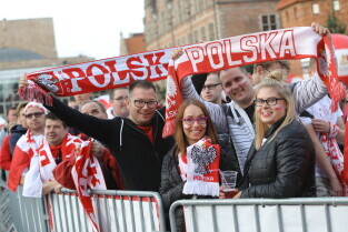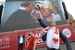 Gdańsk. Strefa kibica, mecz Polska - Kolumbia.