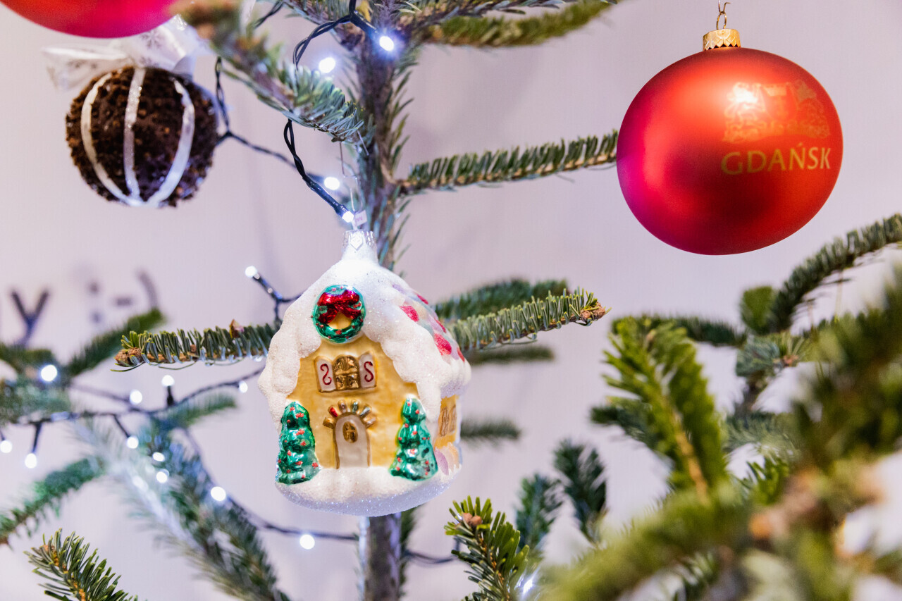 Gdańsk, ul. Kartuska 108. Strojenie choinki - Fundacja Świat Wrażliwy. Obecni byli, Prezydent Gdańska Aleksandra Dulkiewicz i wiceprezydent Piotr Borawski