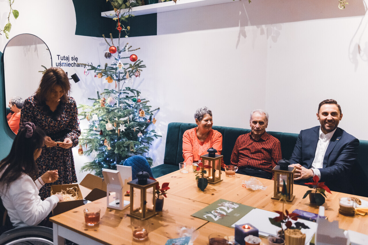 Gdańsk, ul. Kartuska 108. Strojenie choinki - Fundacja Świat Wrażliwy. Obecni byli, Prezydent Gdańska Aleksandra Dulkiewicz i wiceprezydent Piotr Borawski