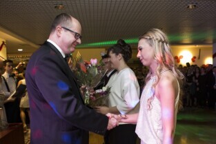 Bal studniówkowy I Liceum Ogólnokształcącego w Gdańsku, którego gościem był Prezydent Gdańska Paweł Adamowicz. Gdańsk Jelitkowo, Hotel Novotel