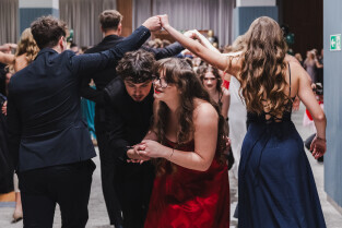 Studniówka XII Liceum Ogólnokształcące z oddziałami sportowymi w Gdańsku. Podczas wieczoru obecna była Prezydent Aleksandra Dulkiewicz