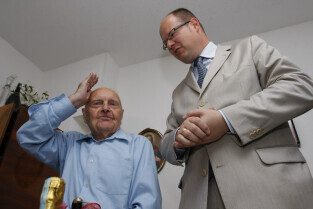 Setne urodziny obchodzi pan Jan Fila. Życzenia złożył mu osobiście Paweł Adamowicz, Prezydent Gdańska