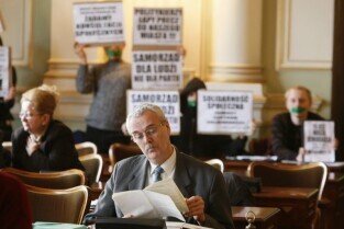 Gdańsk, Nowy Ratusz. Styczniowa sesja Rady Miasta Gdańska. Nz. radny Stefan Grabski