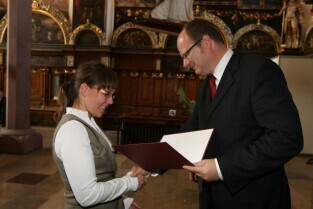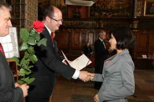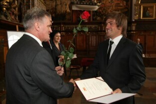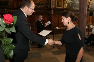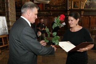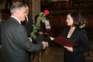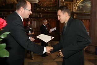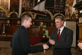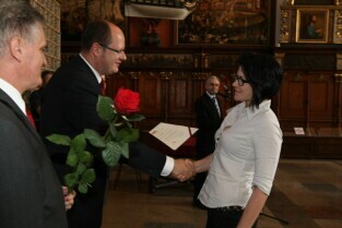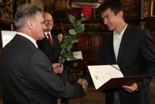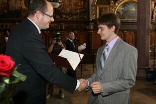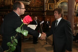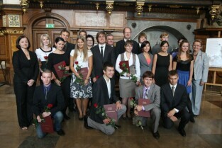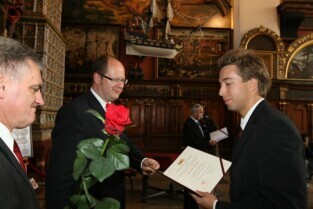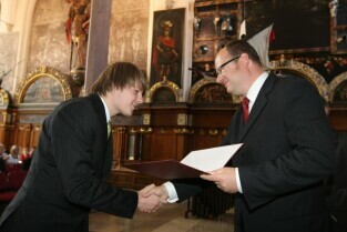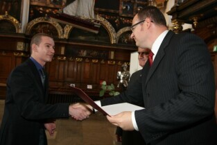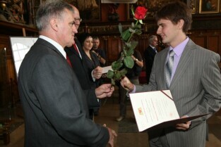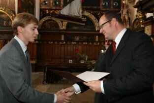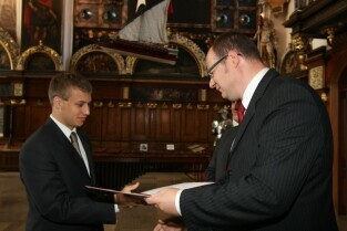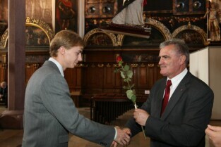 Gdańsk, Dwór Artusa. Stypendia im. Gabriela Daniela Fahrenheita dla młodych gdańszczan studiujących za granicą, które wręczyli Prezydent Gdańska Paweł Adamowicz i Przewodniczący Rady Miasta Bogdan Oleszek