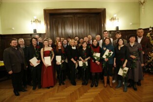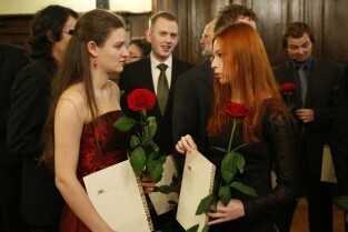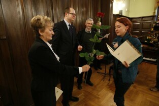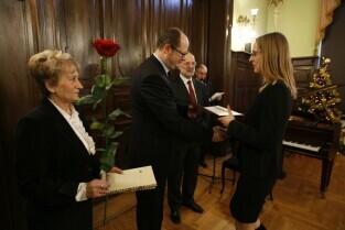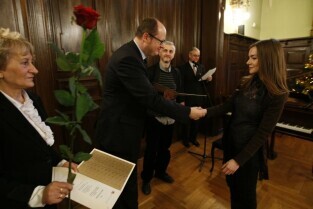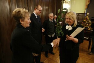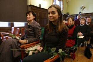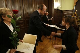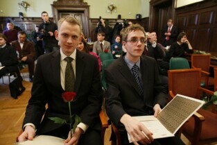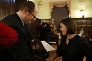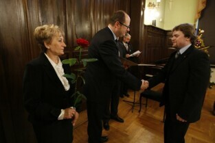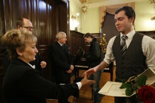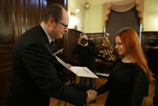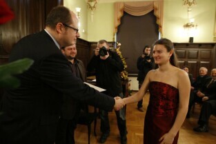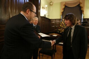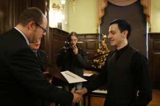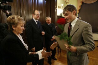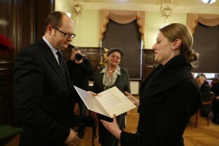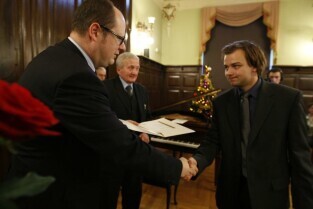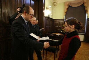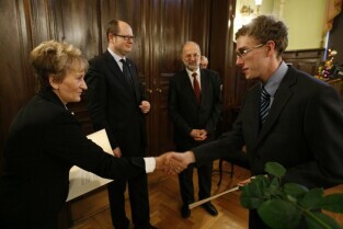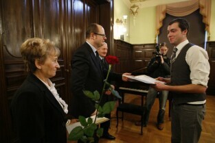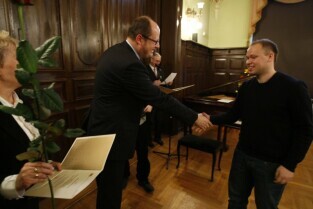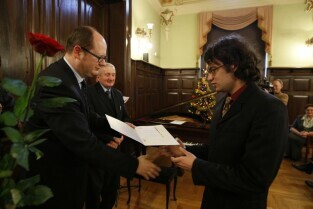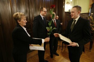 Prezydent Gdańska Paweł Adamowicz wręczył stypendia dla najlepszych gdańskich studentów. Gdańsk, Nowy Ratusz