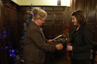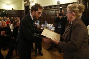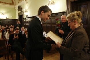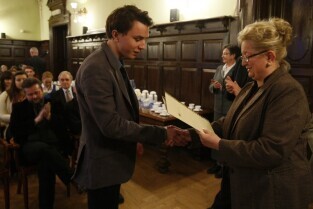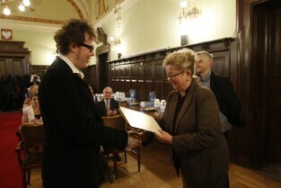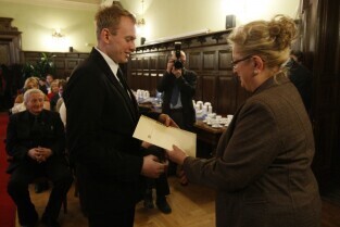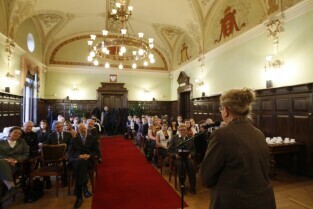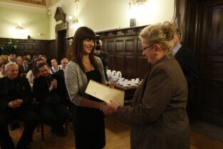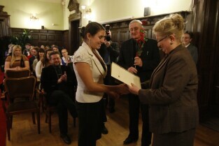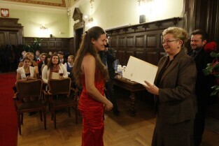 Gdańsk, Nowy Ratusz. Z-ca Prezydenta Gdańska Ewa Kamińska wręczyła stypendia najlepszym gdańskim studentom - comiesięczne oraz jednorazowe.