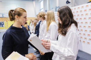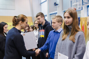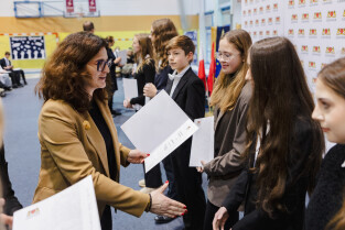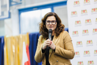 Gdańsk, SP nr 12. Stypendia naukowe Prezydenta Miasta Gdańska. Nz. Aleksandra Dulkiewicz, prezydent Gdańska