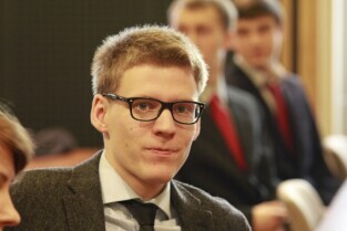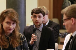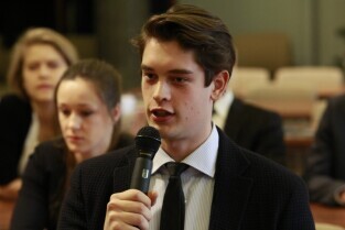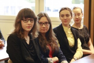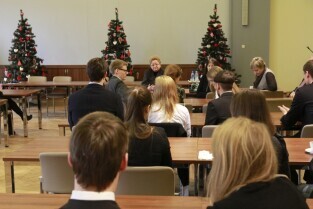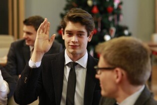 Urząd Miejski w Gdańsku. Spotkanie Prezydenta Gdańska Pawła Adamowicza oraz Zastępcy Prezydenta ds. polityki społecznej Ewy Kamińskiej ze studentami, którzy otrzymali stypendia naukowe im. Gabriela Daniela Fahrenheita na studia za granicą.