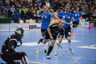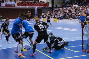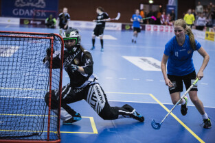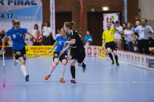 Gdańsk. Hala Widowiskowa AWFiS. SuperFinał Salming Ekstraligi Unihokeja. Olimpia Osowa Gdańsk - MMKS Podhale Nowy Targ