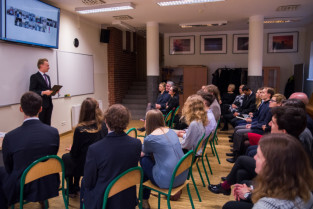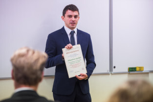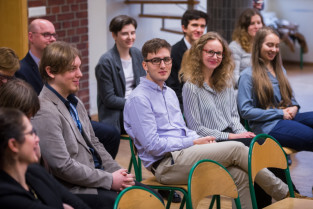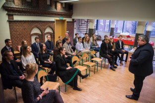 Gdańsk, Gdańskie Szkoły Autonomiczne ul. Osiek. Świąteczne spotkanie stypendystów Fahrenheita. Nz. były stypendysta Aleksander Spychała