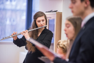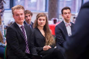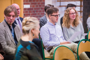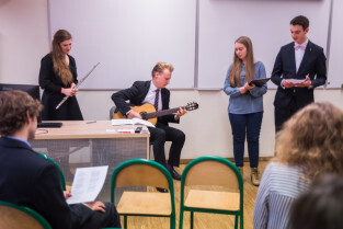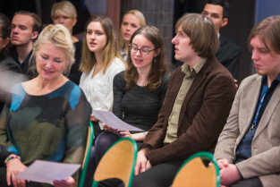 Gdańsk, Gdańskie Szkoły Autonomiczne ul. Osiek. Świąteczne spotkanie stypendystów Fahrenheita. Nz. stypendysta Daniel Egielman - Uniwersytet Mozarteum w Salzburgu