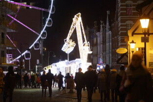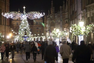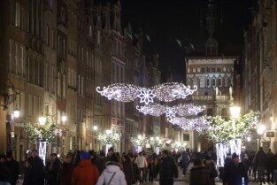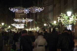 Gdańsk. Świąteczny Gdańsk. Spacerowicze, Jarmark Świąteczny i Iluminacje. Nz. Ul. Stągiewna.