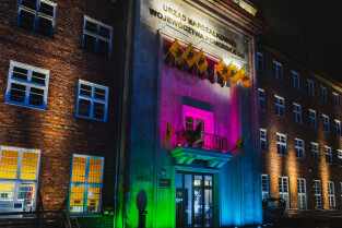 Gdańsk. Światowy Dzień Chorób Rzadkich. Nz. Budynek Urzędu Marszałkowskiego Województwa Pomorskiego