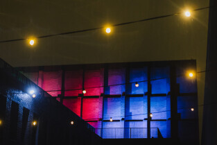 Gdańsk. Światowy Dzień Chorób Rzadkich. Nz. ściana sznurowni Teatru Szekspirowskiego