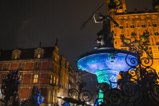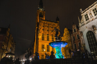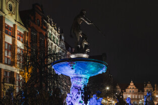 Gdańsk. Światowy Dzień Chorób Rzadkich. Nz. fontanna Neptuna