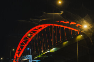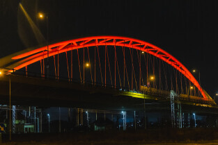 Gdańsk. Światowy Dzień Chorób Rzadkich. Nz. wiadukt „Harfa” w ciągu alei Macieja Płażyńskiego