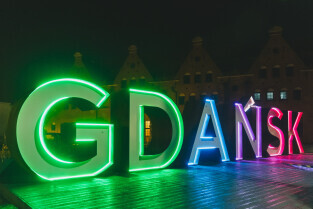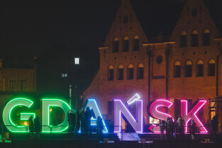 Gdańsk. Światowy Dzień Chorób Rzadkich. Nz.napis Gdansk na Ołowiance
