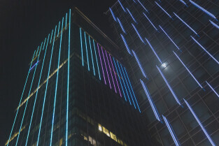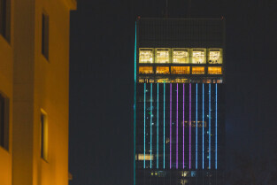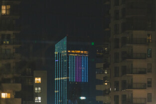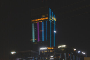 Gdańsk. Światowy Dzień Chorób Rzadkich. Nz. budynek Olivia Star