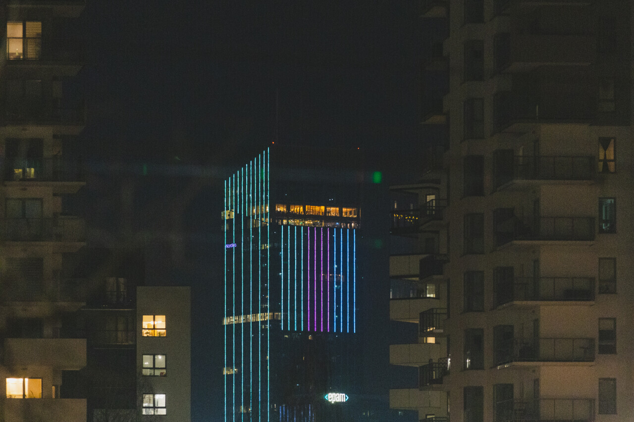 Gdańsk. Światowy Dzień Chorób Rzadkich. Nz. budynek Olivia Star