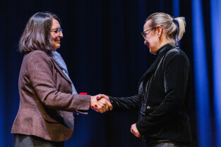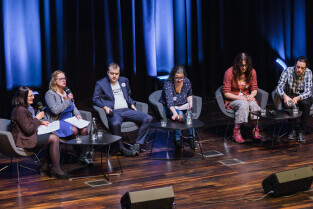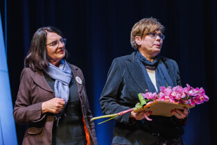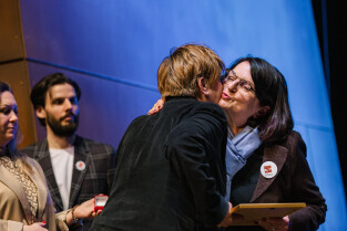 Gdańsk. Światowy Dzień Świadomości Autyzmu w ECS. Nz. Małgorzata Rybicka i Andrzej Stawicki