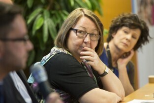 Ośrodek Kultury Morskiej w Gdańsku. Konferencja prasowa poświęcona organizacji IV Światowego Zjazdu Gdańszczan. Nz. Dyrektor Biura Prezydenta Gdańska ds. Kultury Anna Czekanowicz-Drążewska