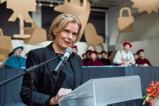 Gdańsk, ul. Tkacka. Święto Akademii Sztuk Pięknych. Uroczystość z okazji obchodów 74. rocznicy istnienia ASP. Nz. Lidia Skrzyniarz, dyrektor Departamentu Szkolnictwa Artystycznego i Edukacji Kulturalnej w Ministerstwie Kultury i Dziedzictwa Narodowego