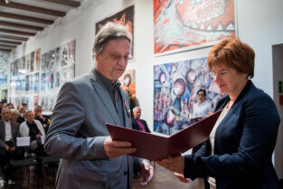 Gdańsk, ul. Tkacka. Święto Akademii Sztuk Pięknych. Uroczystość z okazji obchodów 74. rocznicy istnienia ASP. Nz. rektor Akademii Sztuk Pięknych prof. Krzysztof Polkowski
