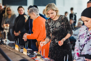 Gdańsk, Święto Chanuka. Uroczyste zapalenie pierwszej świeczki chanukowej i koncert kantora Symcha Keller. Nz. Prezydent Gdańska Aleksandra Dulkiewicz