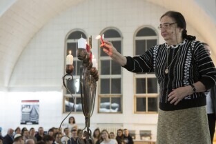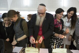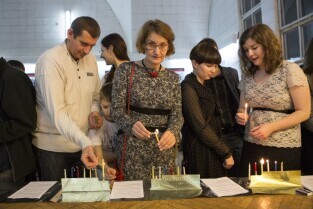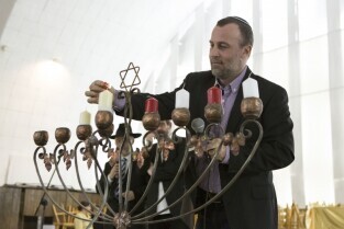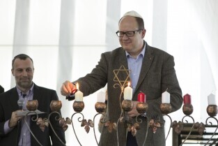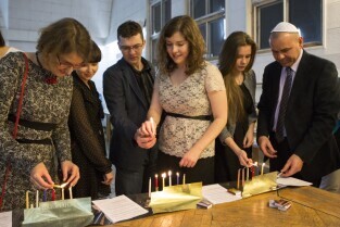 Synagoga w Gdańsku Wrzeszczu. Święto Chanuka. Uroczystość zapalenia szóstej świeczki chanukowej