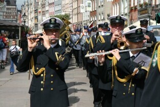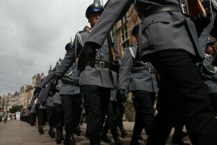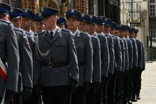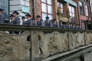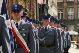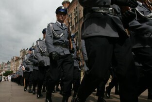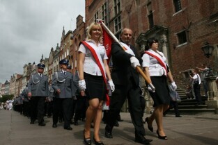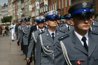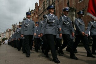 Gdańsk. Obchody Święta Policji. Nz. Parada policjantów ul. Długą