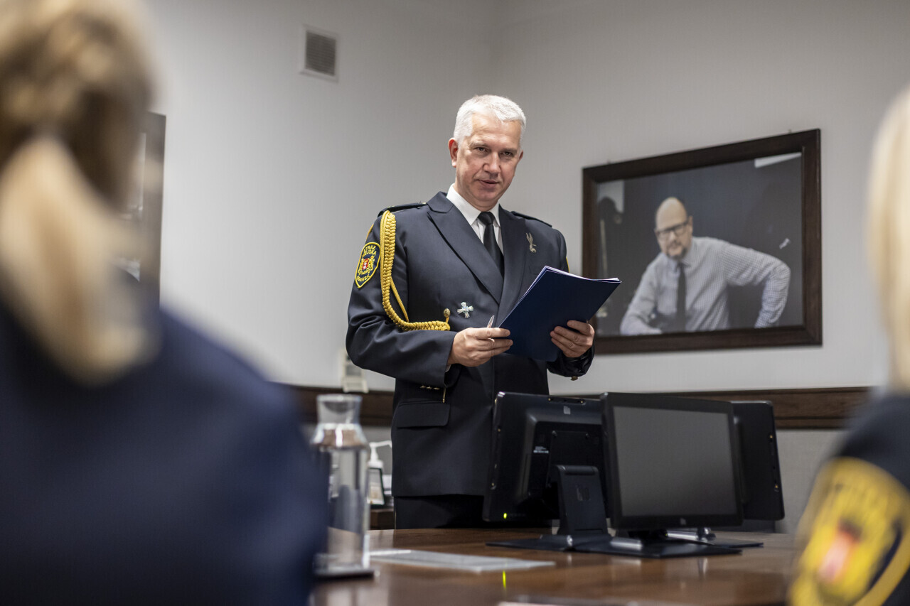 Gdańsk. Z okazji Święta Straży Miejskiej w Gdańsku Piotr Borawski, Z-ca Prezydenta ds. mobilności i bezpieczeństwa, wręczał wyróżniającym się strażnikom miejskim nagrody.