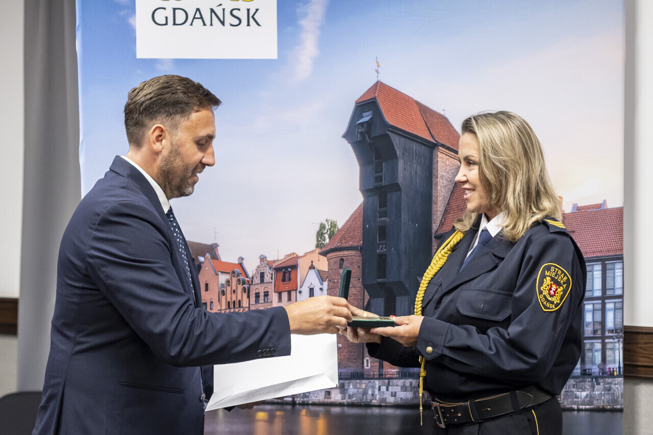 Gdańsk. Z okazji Święta Straży Miejskiej w Gdańsku Piotr Borawski, Z-ca Prezydenta ds. mobilności i bezpieczeństwa, wręczał wyróżniającym się strażnikom miejskim nagrody.