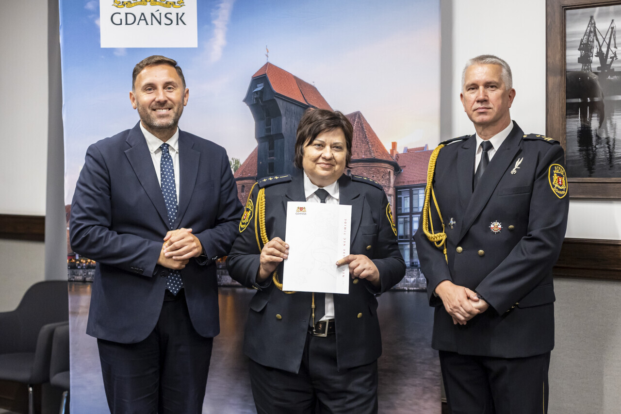 Gdańsk. Z okazji Święta Straży Miejskiej w Gdańsku Piotr Borawski, Z-ca Prezydenta ds. mobilności i bezpieczeństwa, wręczał wyróżniającym się strażnikom miejskim nagrody.