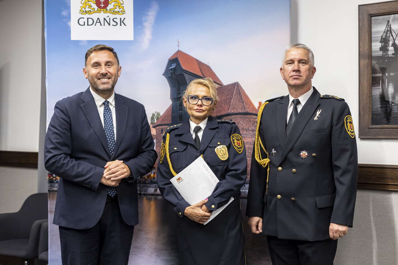 Gdańsk. Z okazji Święta Straży Miejskiej w Gdańsku Piotr Borawski, Z-ca Prezydenta ds. mobilności i bezpieczeństwa, wręczał wyróżniającym się strażnikom miejskim nagrody.
