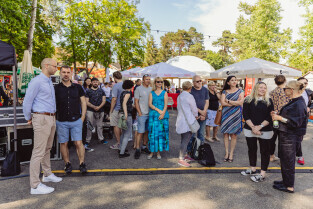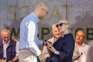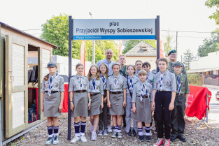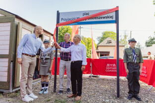 Gdańsk. Święto Wyspy Sobieszewskiej. 50. lat włączenia Wyspy Sobieszewskiej w administracyjne granice Gdańska. Zastępca Prezydenta Gdańska Piotr Kryszewski odsłonił z radnymi i działaczami tablicę placu Przyjaciół Wyspy Sobieszewskiej