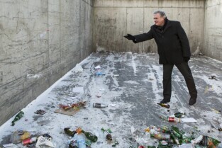 Losowanie nagród w "Sylwestrowym Konkursie Butelkowym". Gdańsk Szadółki, Zakładu Utylizacyjnego. Nz. Przewodniczący Rady Miasta Gdańska Bogdan Oleszek