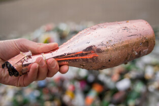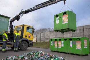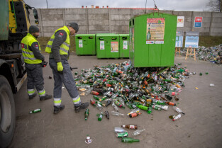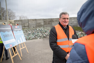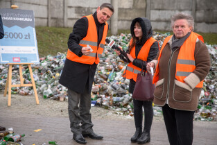 Gdańsk Szadółki. Losowanie nagród w "Sylwestrowym Konkursie Butelkowym". Konkurs zorganizowała Rada Miasta Gdańska i Zakład Utylizacyjny w Gdańsku. Nz. (od lewej) Prezes ZU Michał Dzioba, Bogdan Oleszek-Przewodniczący Rady Miasta Gdańska i Piotr Spyra-Dyrektor Biura Rady Miasta