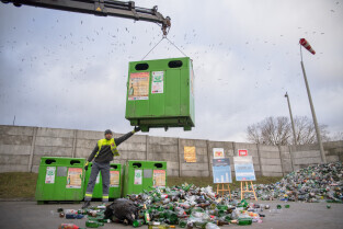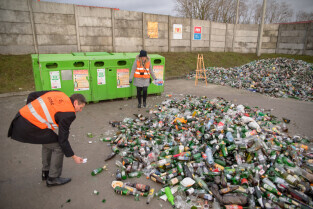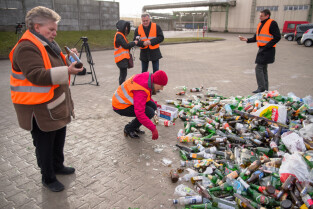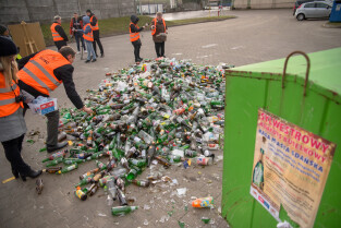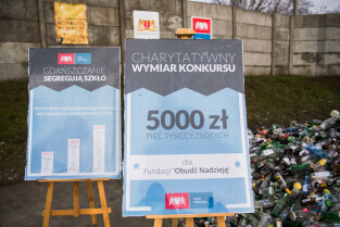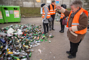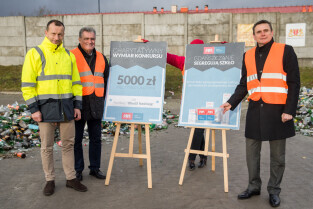 Gdańsk Szadółki. Losowanie nagród w "Sylwestrowym Konkursie Butelkowym". Konkurs zorganizowała Rada Miasta Gdańska i Zakład Utylizacyjny w Gdańsku
