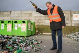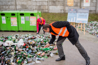 Gdańsk Szadółki. Losowanie nagród w "Sylwestrowym Konkursie Butelkowym". Konkurs zorganizowała Rada Miasta Gdańska i Zakład Utylizacyjny w Gdańsku. Nz. Bogdan Oleszek-Przewodniczący Rady Miasta Gdańska