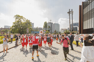 Symboliczne wspólne otwarcie bramy z udziałem bohaterów Sierpnia'80
