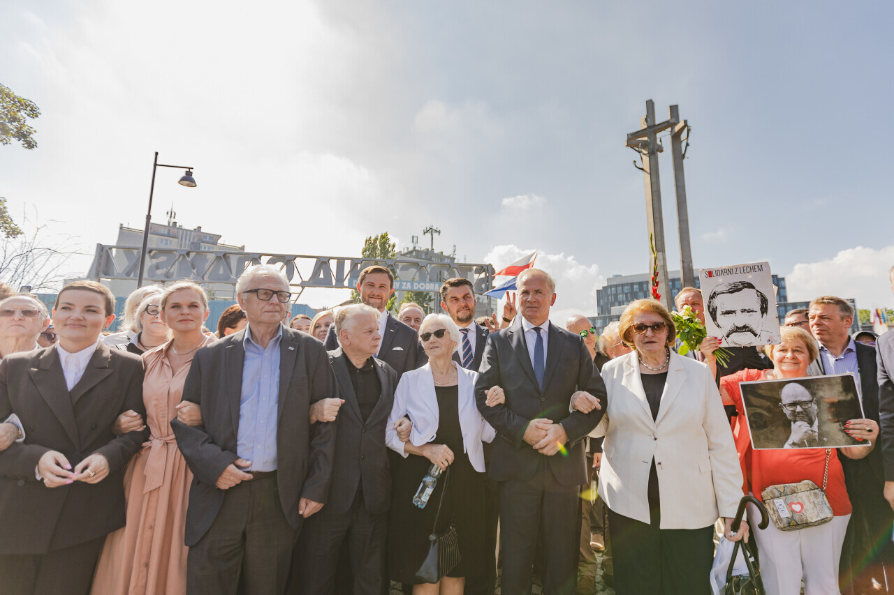 Symboliczne wspólne otwarcie bramy z udziałem bohaterów Sierpnia'80