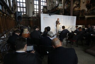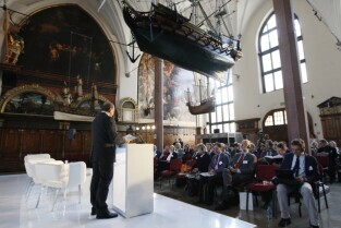 Sympozjum "Pamięć Europy" poświęcone europejskiej kulturze pamięci, w której wzięli udział przedstawiciele europejskich instytucji historycznych. Gdańsk, Dwór Artusa